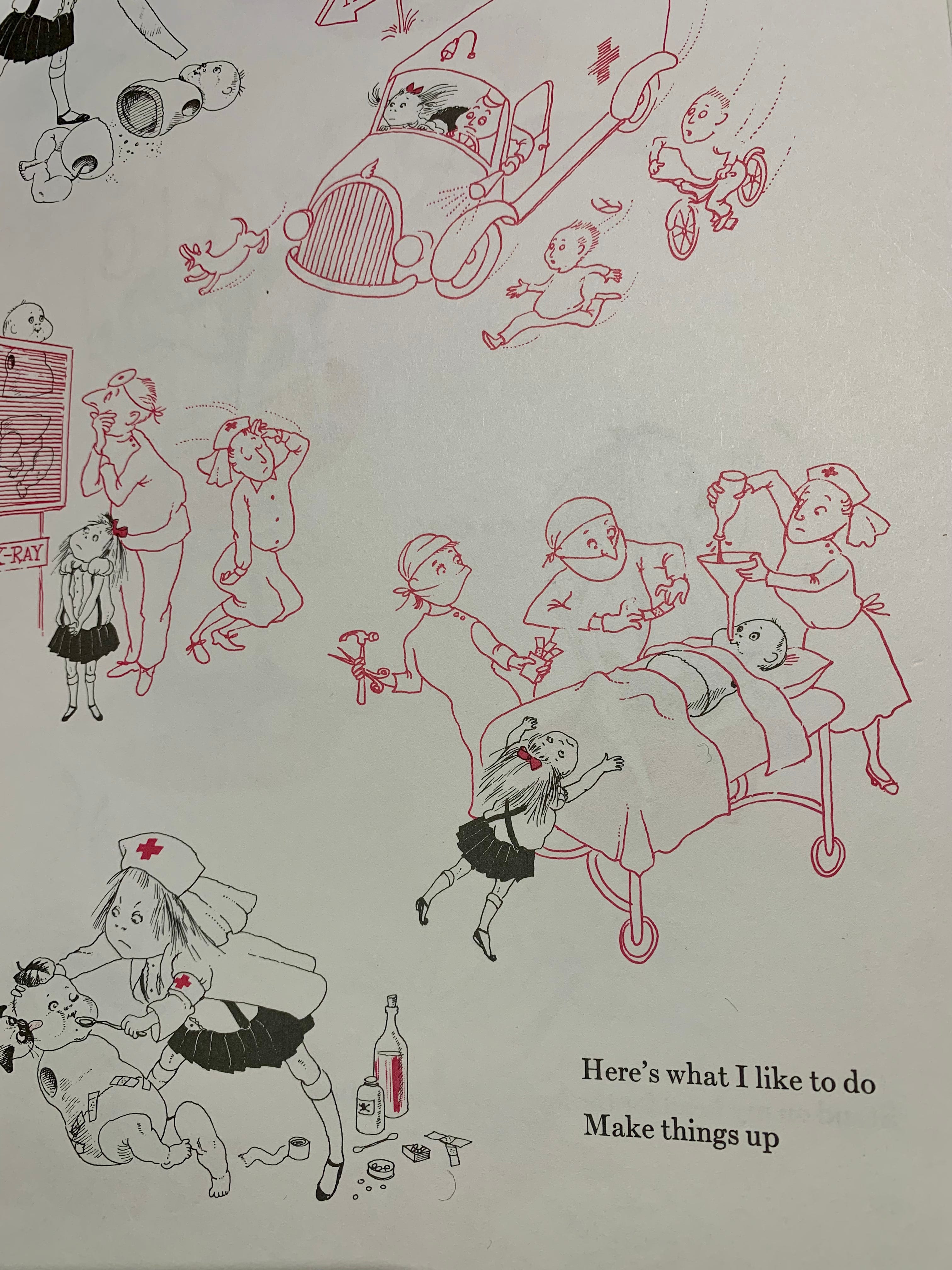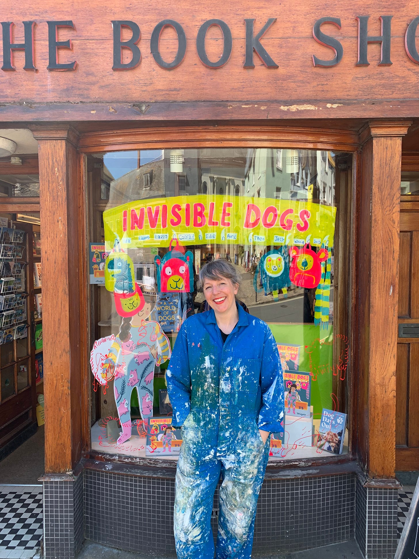 And I kept thinking about Eloise, written by Kay Thompson and illustrated by Hilary Knight, which my Dad read as a child and handed down to me and which I adored. Eloise has a vivid imagination and her imaginary world is illustrated with just a red line, and so I thought perhaps I could use the same device. In fact I suggested to Libby that maybe it could be a fluorescent pink (which has to be printed as an extra colour and is more expensive) and to my delight Libby agreed. So there we have it. High Vis invisible dogs!
