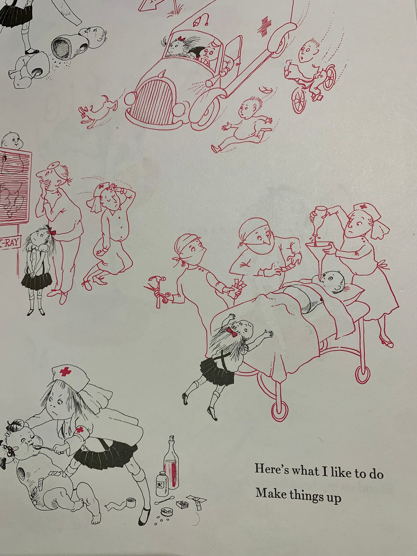 My real-life Ida invented these invisible dogs one day. I could see her holding invisible leads so I asked her about them. As she talked I reached for my phone and started recording our conversation. The words she used were so perfect that many of them ended up in the book.