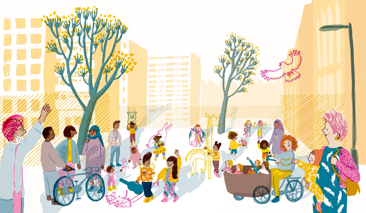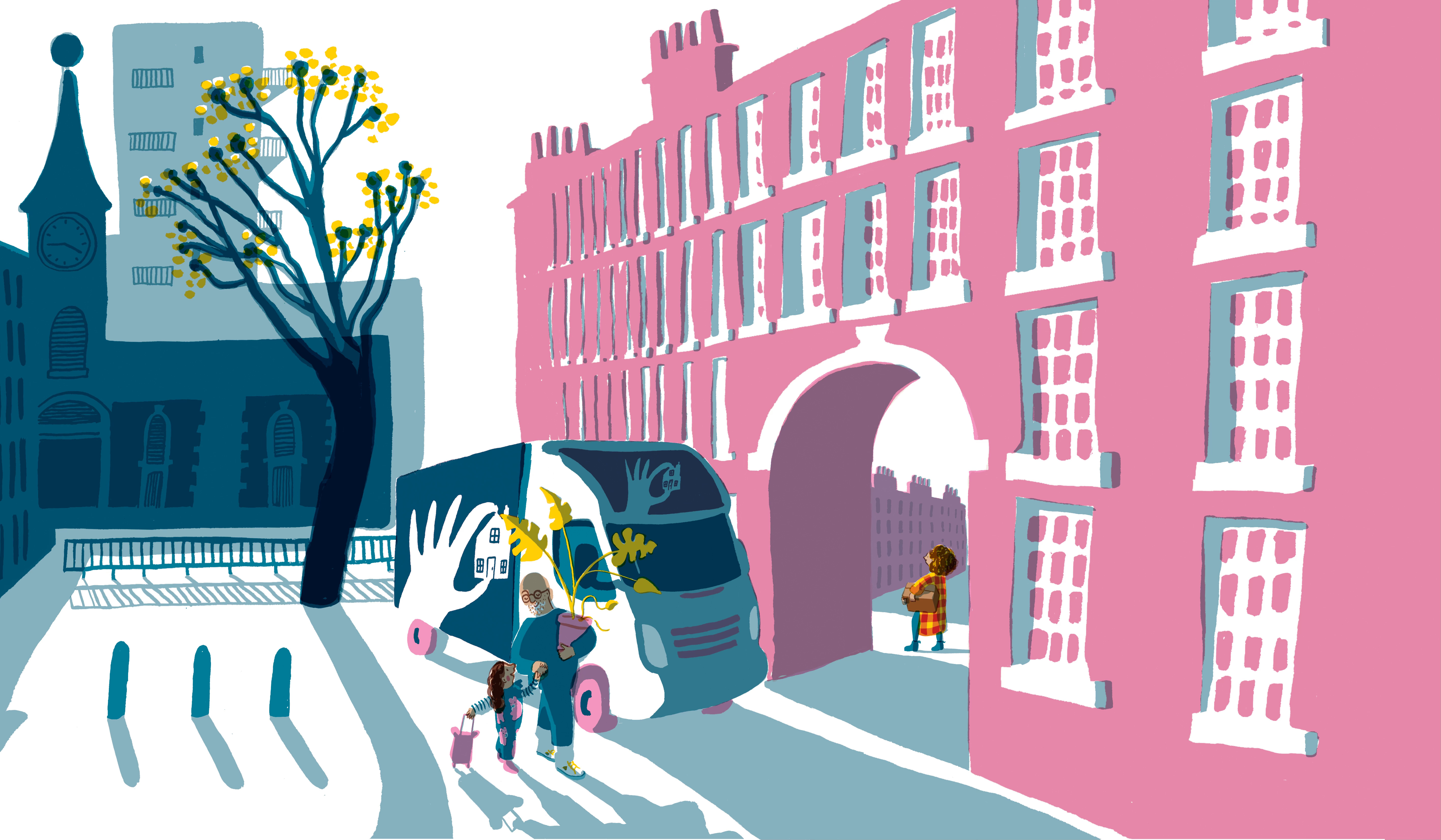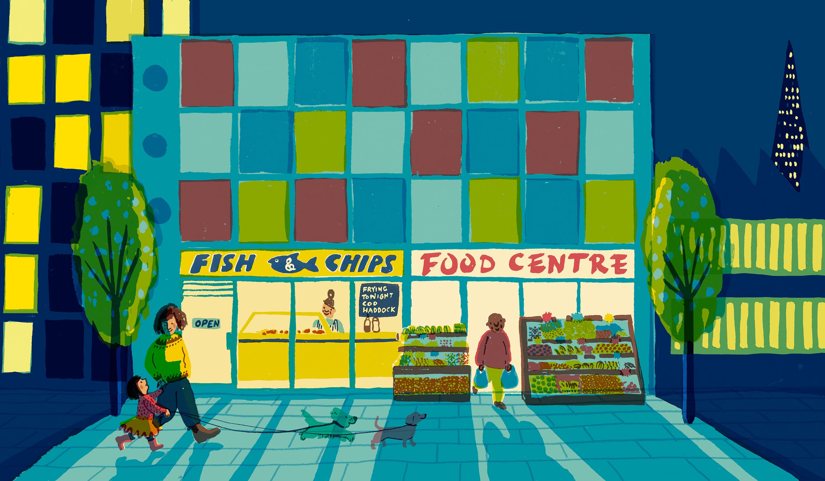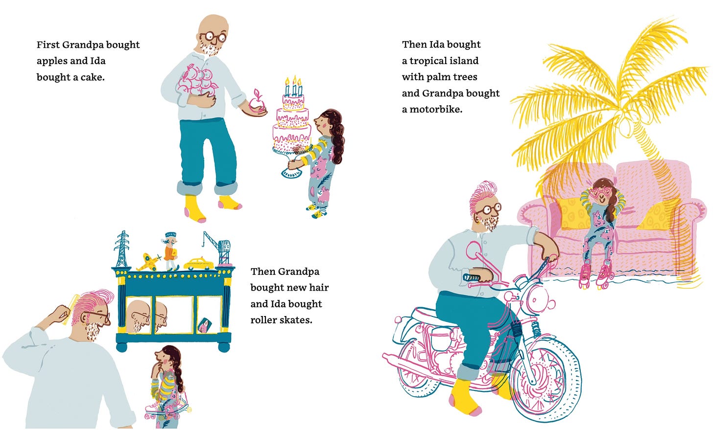 Grandpa is based on my own motorbike-riding Dad, who is a very kind grandpa. I had a lot of fun including in the illustrations some of my dad's toys that he has kept from his own childhood. I set the whole story in our neighbourhood in London. Sketching from life is really important to me and has informed my work, and what I love is that when you draw from life a lot you end up with a database of people and places and so when you're looking for something or someone to put in an illustration you often find you've already drawn it.