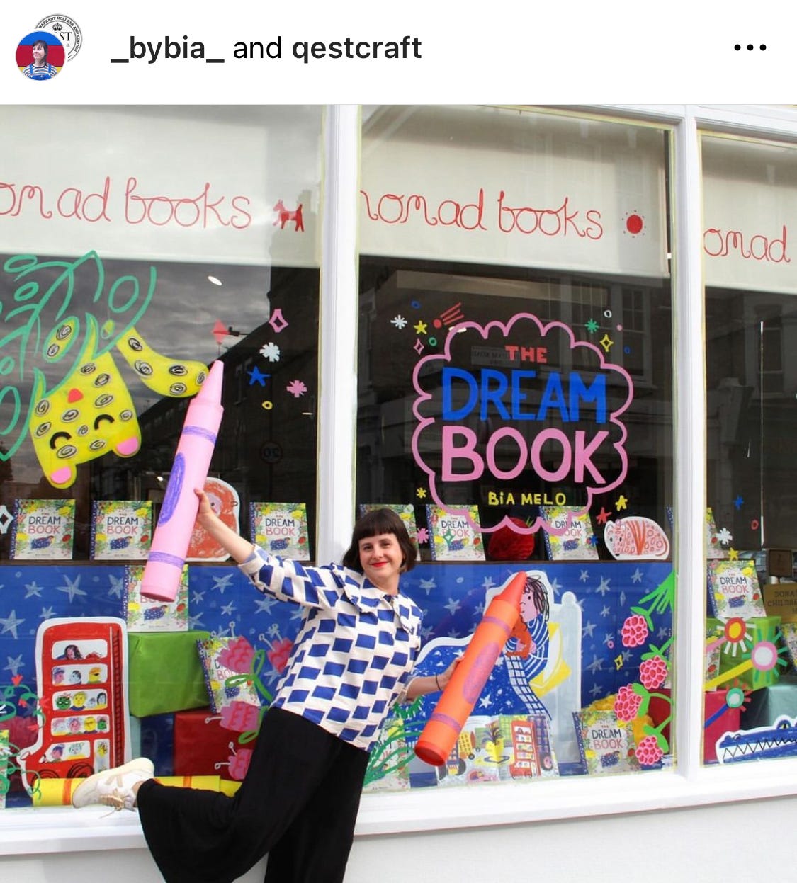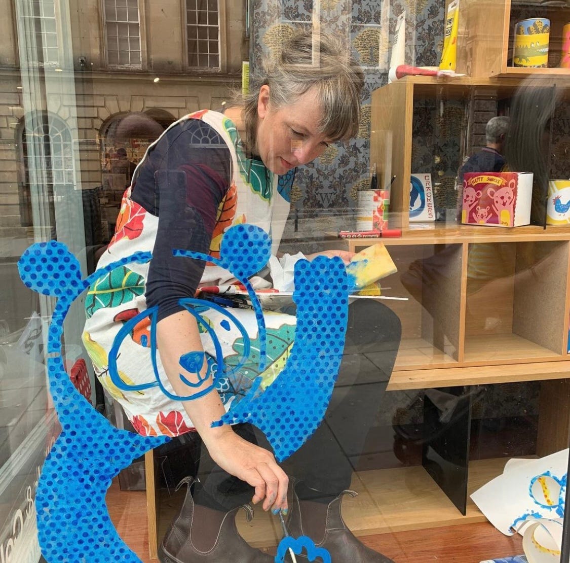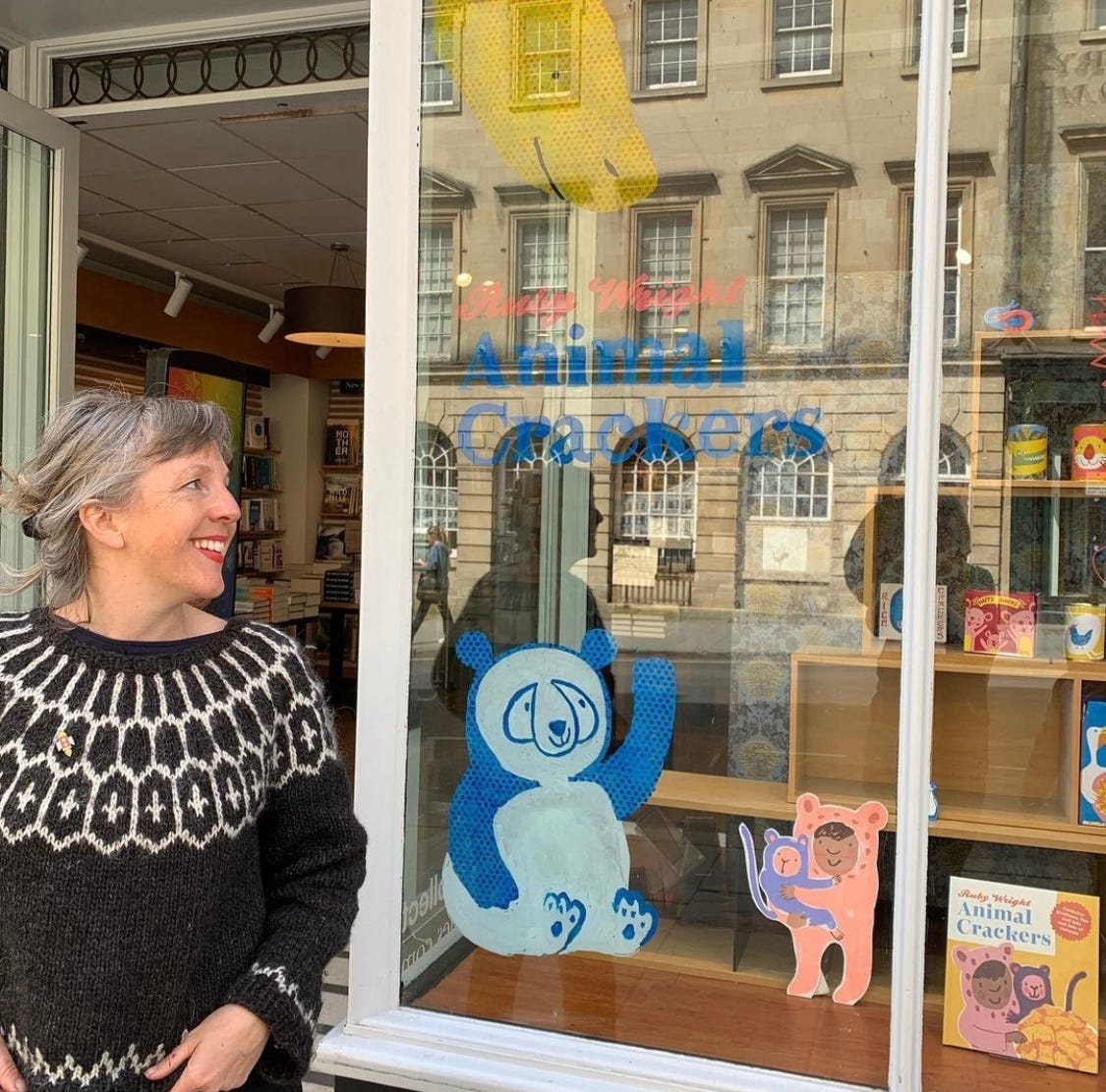 Finally I’d say that window painting is quite exhausting so don’t try and fit in seven windows in seven days! I did five windows for my first book over about a fortnight which felt doable. Some of the shops I had a relationship with already but most were organised by my wonderful Publicist Emma O’Donovan. Also I would advise against booking anything in immediately after your window painting, there’s nothing worse than having the deadline of a school pick-up / dentist appointment looming when you’re struggling with a tricky giraffe.