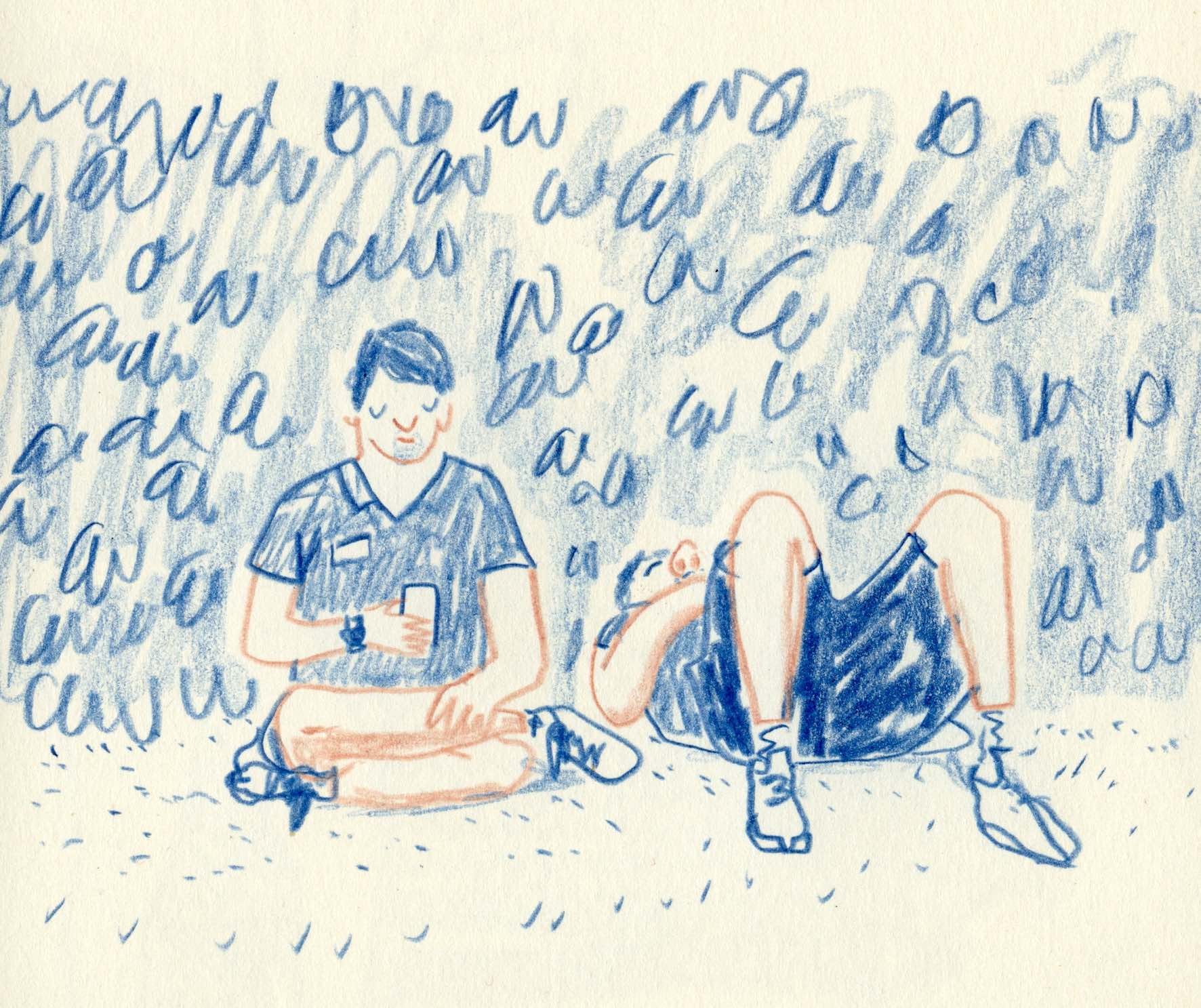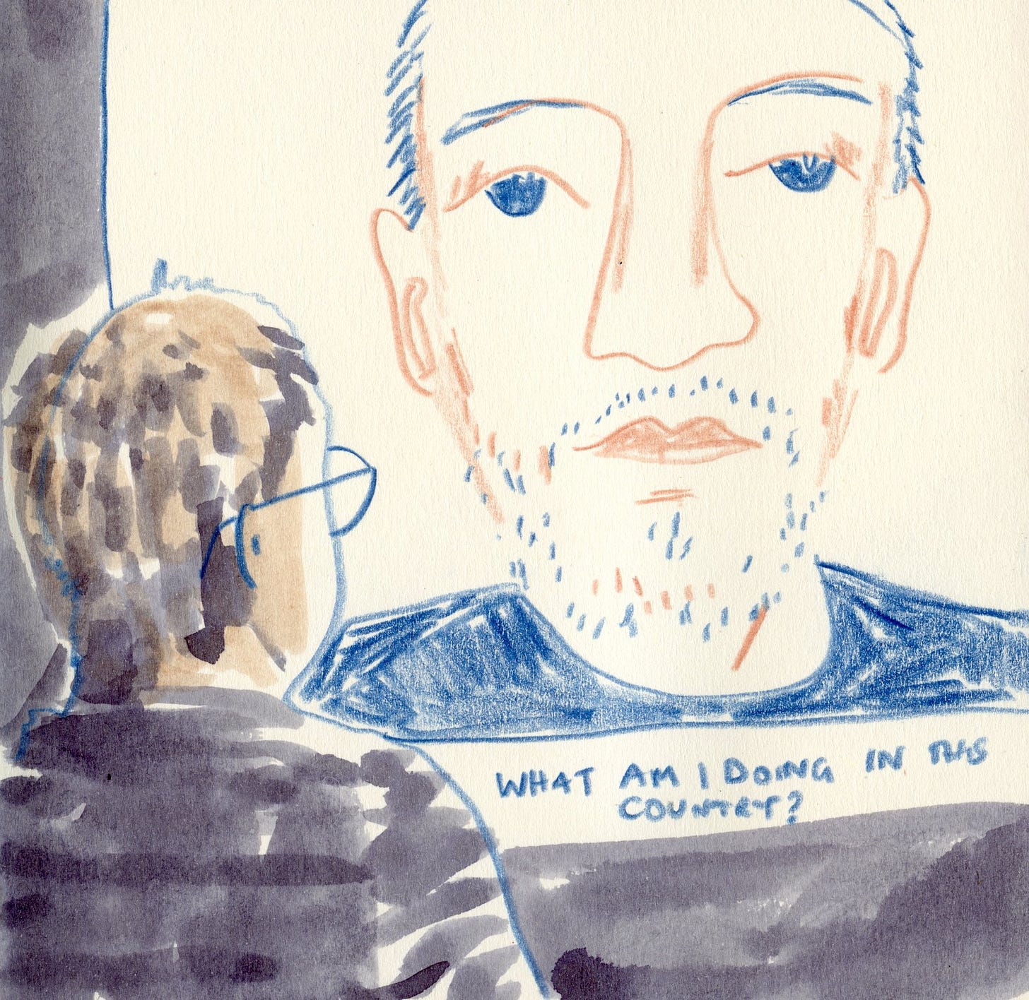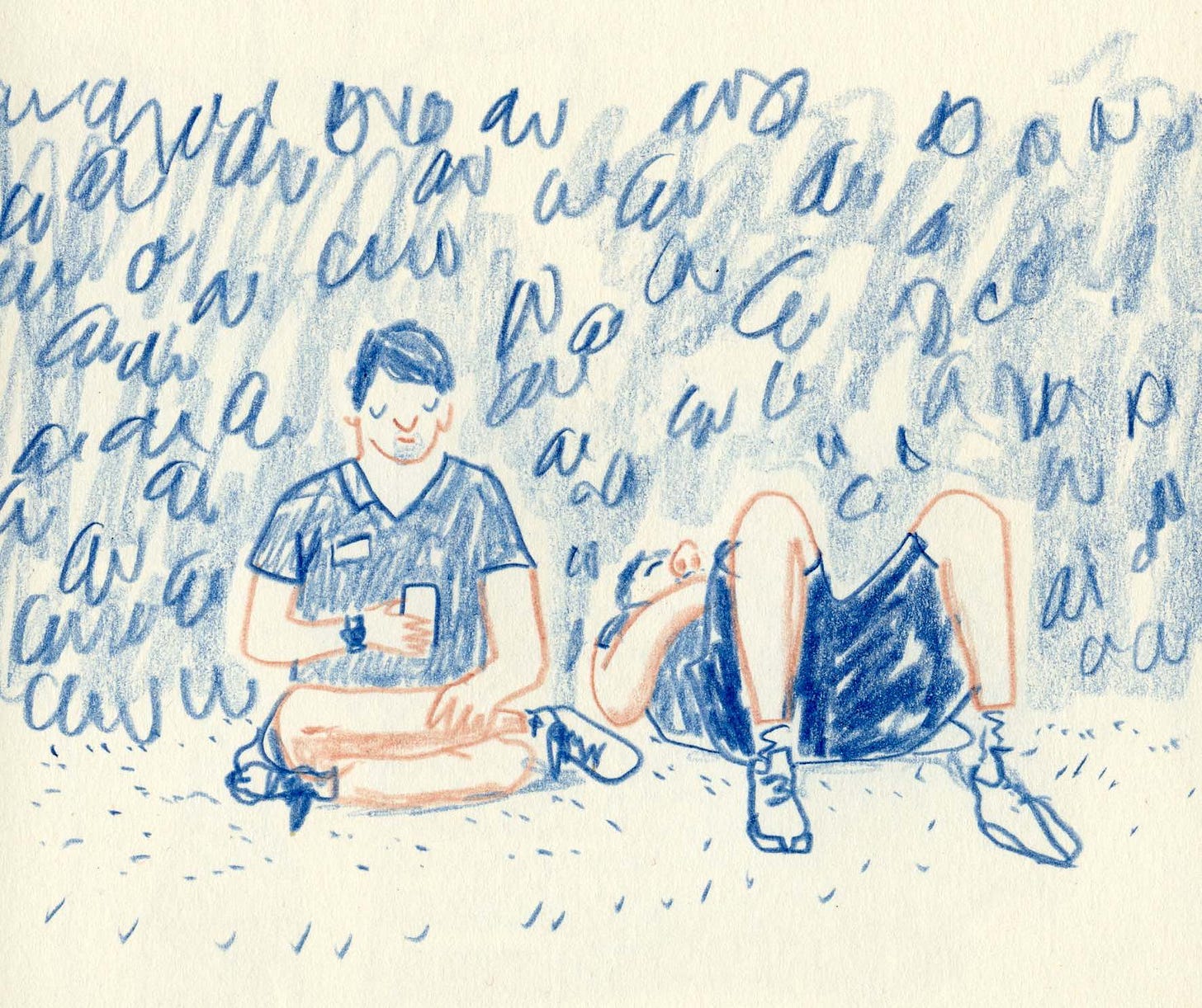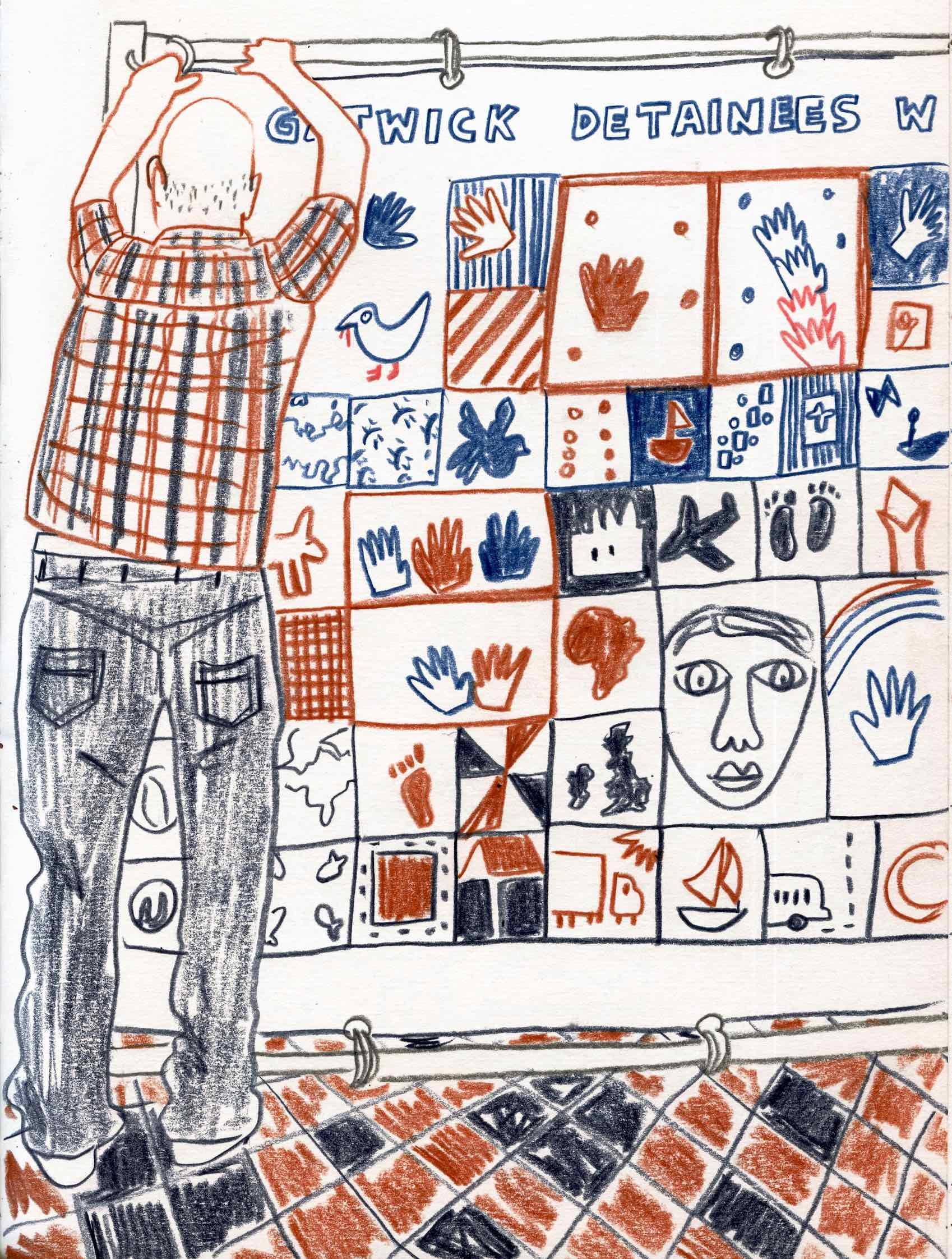 For the past two years I’ve been doing some drawings with Refugee Tales, an organisation calling for the end to indefinite detention for people seeking refuge in the UK. Every summer, Refugee Tales organises a walk which takes place over several days and each evening there is a big delicious meal and an event consisting of readings, music and often dancing. Then the hardcore participants spend the night in a temporary dormitory before starting again in the morning. It’s an extraordinary and wonderful community and I urge you to find out more through RT’s website and books, which are a series of tales written by people with lived experience of detention in collaboration with authors.